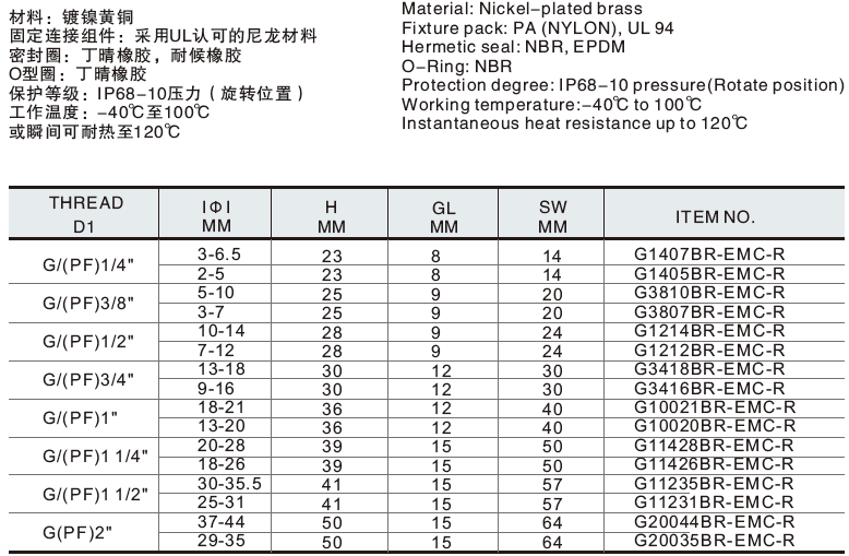 金屬電纜固定頭 >> G(PF)型屏蔽金屬電纜固定頭-R型-G(PF)-EMC-METAL-CABLE-GLAND-R-TYPE