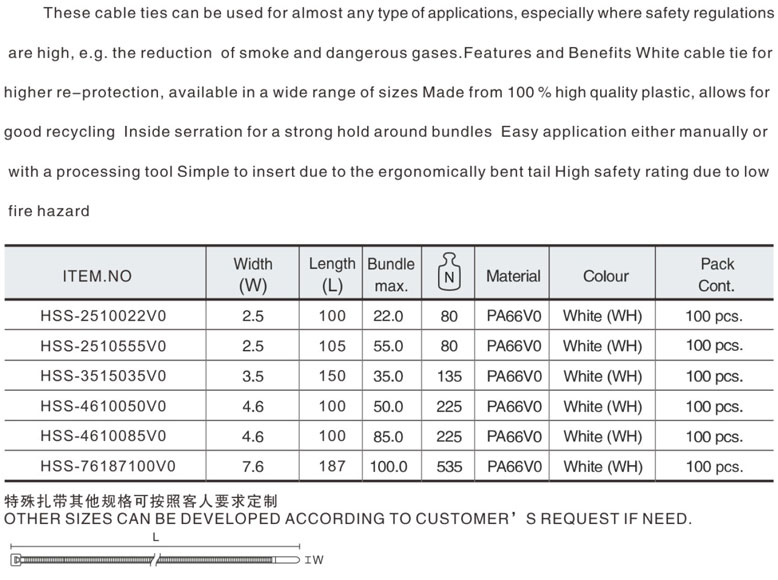 特殊定制扎帶系列 >> V0級尼龍扎帶