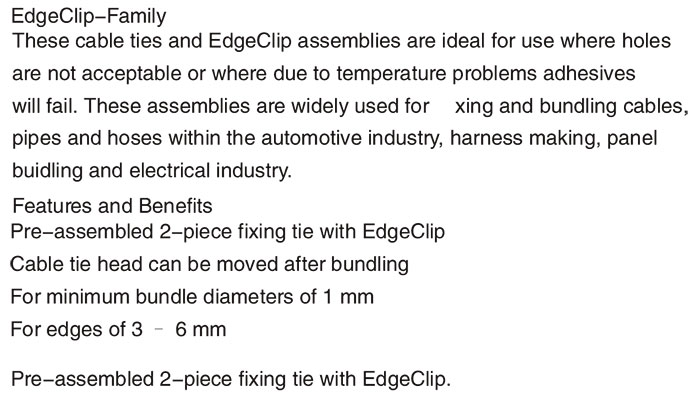 汽車扎帶系列 >> 邊夾分體汽車扎帶 適合3.0-6.0MM尺寸安裝