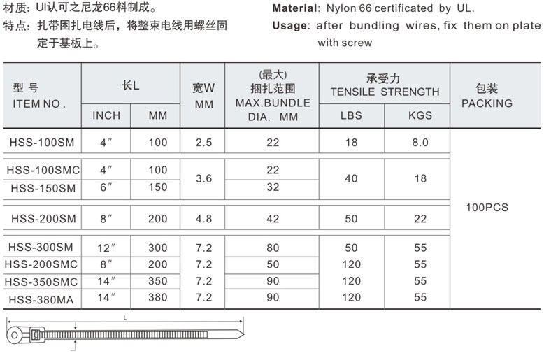 尼龍扎帶系列 >> 固定頭式扎線帶