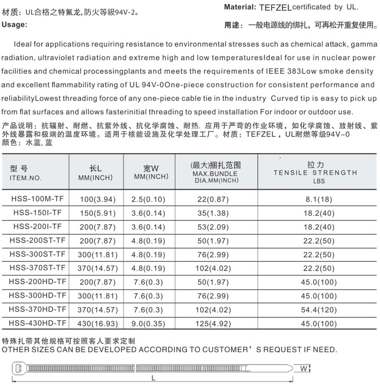 特殊定制扎帶系列 >> 特氟龍扎帶